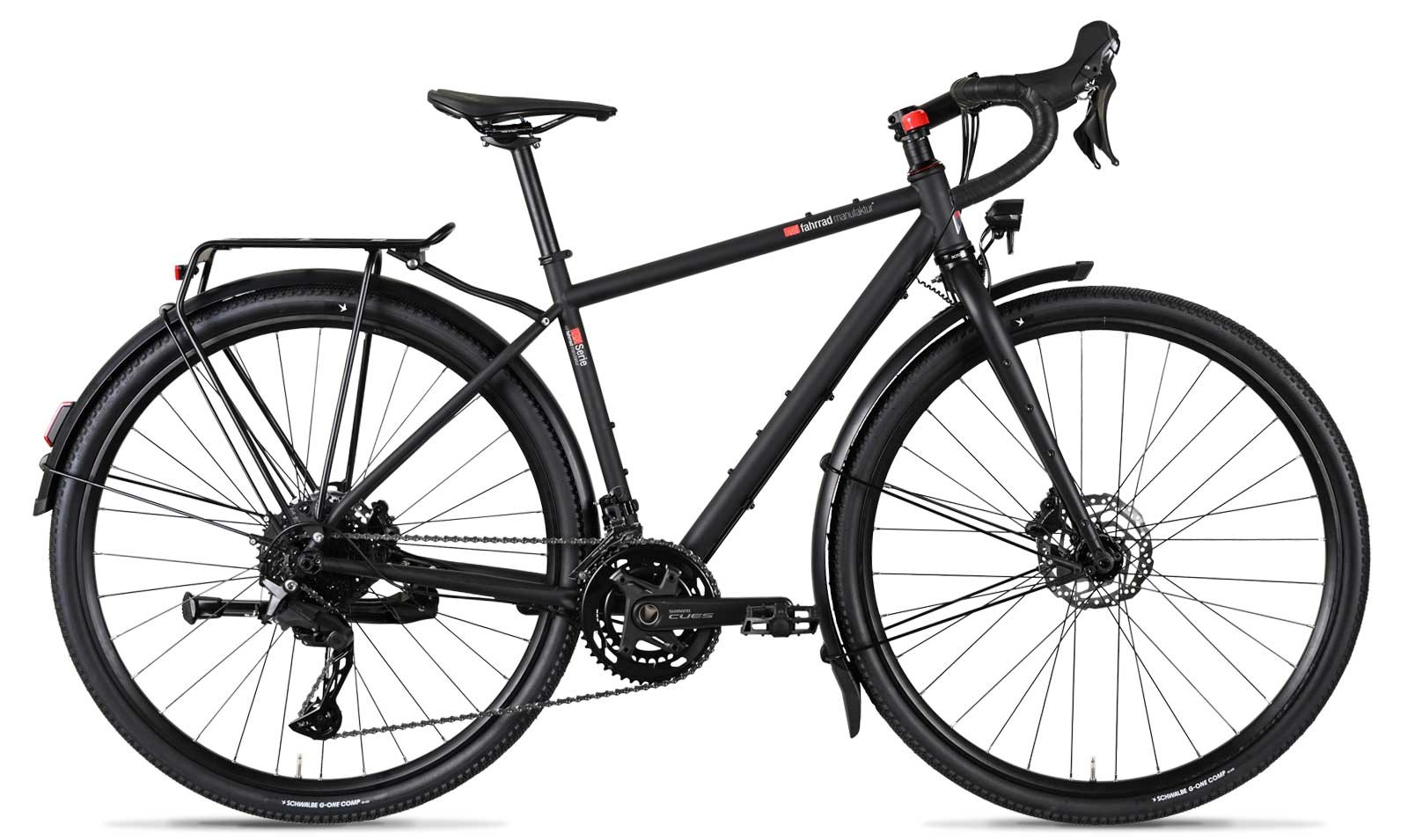 Das GXQ-400 Der Name GX steht für Gravel , und das Q für equipped – das bedeutet, dass dieses Fahrrad komplett ausgestattet ist mit Schutzblechen, Nabendynamo, Beleuchtung und Gepäckträger.